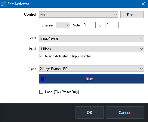 Turn a button on the AKAI APC40 MK2 controller blue when Input 1 is in Preview