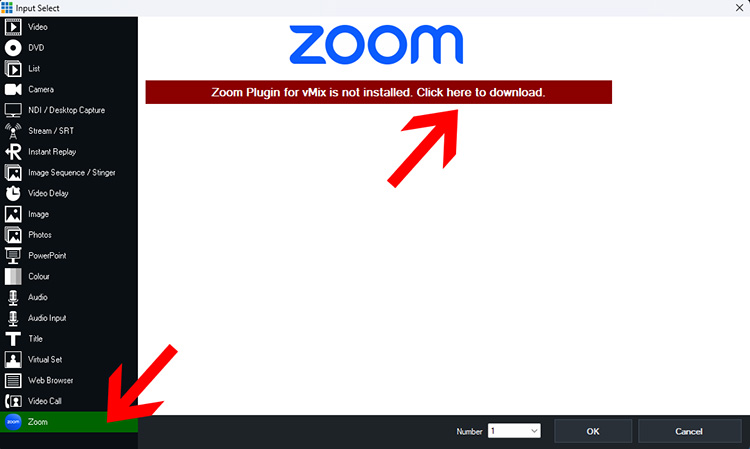 This will send you to the following knowledge base article which contains the link to install the Zoom plugin for vMix: