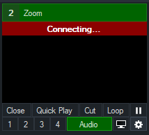 If you have selected the Connect button, the Zoom input will show a red Connecting banner until it has connected. It will then appear blank/black if no participants have joined yet.